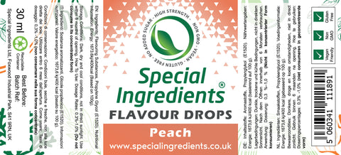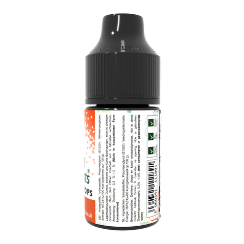 Flavour Drops sono aromi intensi solubili in acqua di qualità superiore che forniscono un metodo eccezionalmente efficace per aggiungere sapore. Sono prodotti altamente concentrati, versatili e multiuso, sia per alimenti che per liquidi. Devono essere usati con parsimonia; 1-2 ml sono sufficienti per aromatizzare 1 litro di liquido di base. Ogni flacone da 30 ml contiene circa 800 gocce. Flavour Drops si disperde bene nella maggior parte degli alimenti e delle bevande. Sono ideali per aromatizzare torte, glasse, fondenti, gelati, sorbetti, cupcake, pasticceria, insalate, salse, glasse, ganache, dessert, cocktail, bevande, panna, vino, birra, liquori, dolci e altro ancora. Possono anche essere utilizzati per esaltare il sapore di un piatto, senza modificare la consistenza del prodotto originale. Senza allergeni, adatto a vegani, ovo-latto vegetariani e vegetariani, non OGM, senza glutine, adatto ai kosher, senza zuccheri aggiunti.